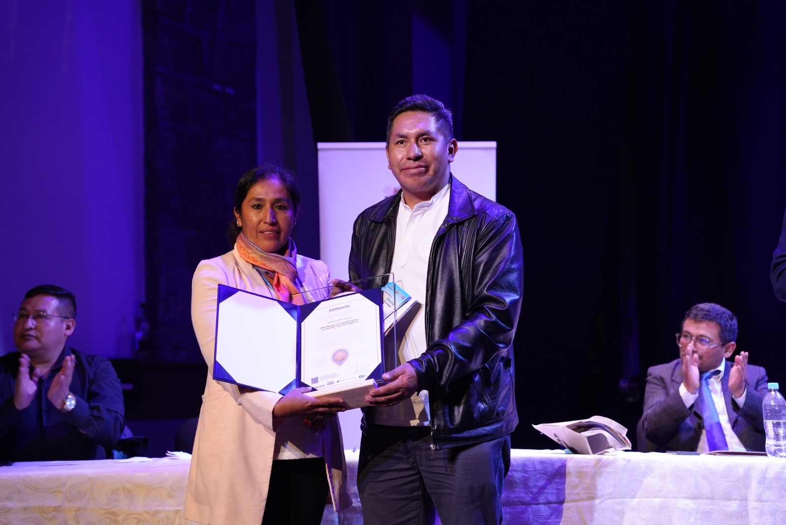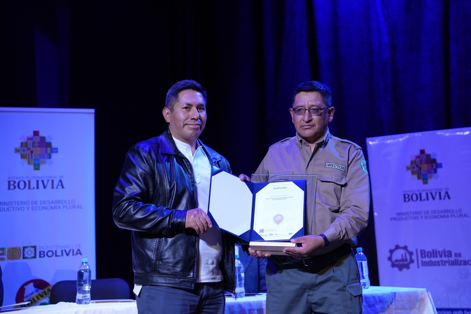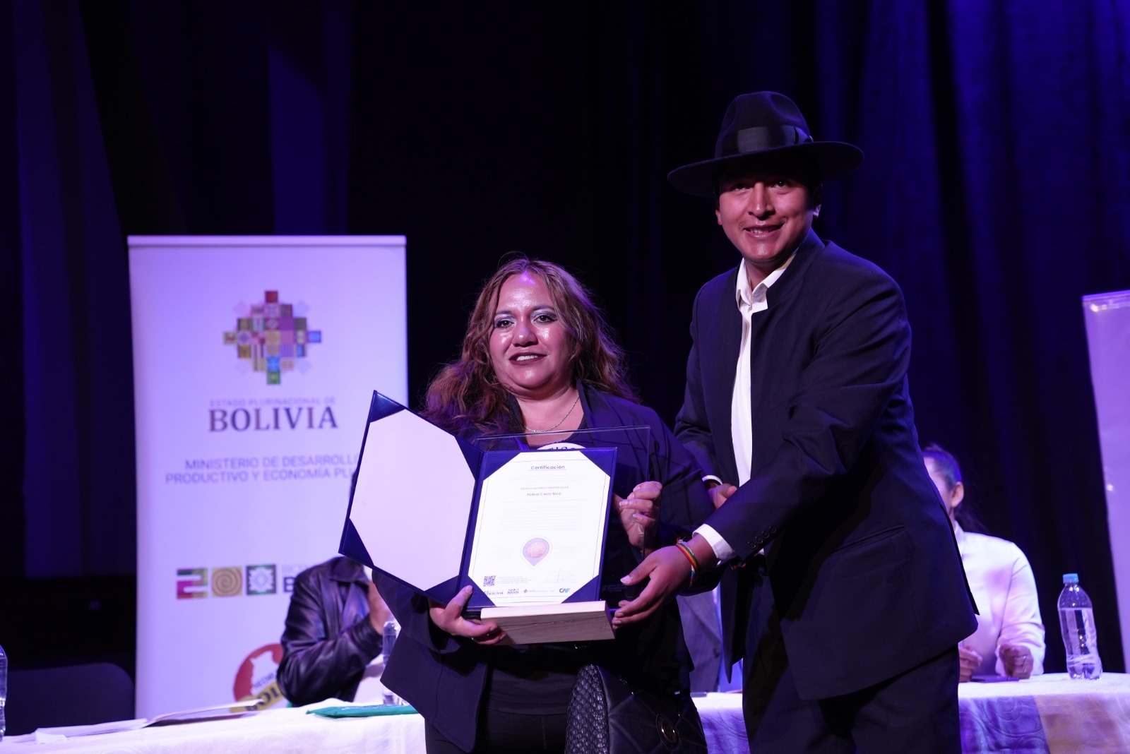 El ministro de Desarrollo Productivo y Economía Plural, Zenón Mamani, entrega certificaciones de los destinos turísticos del país