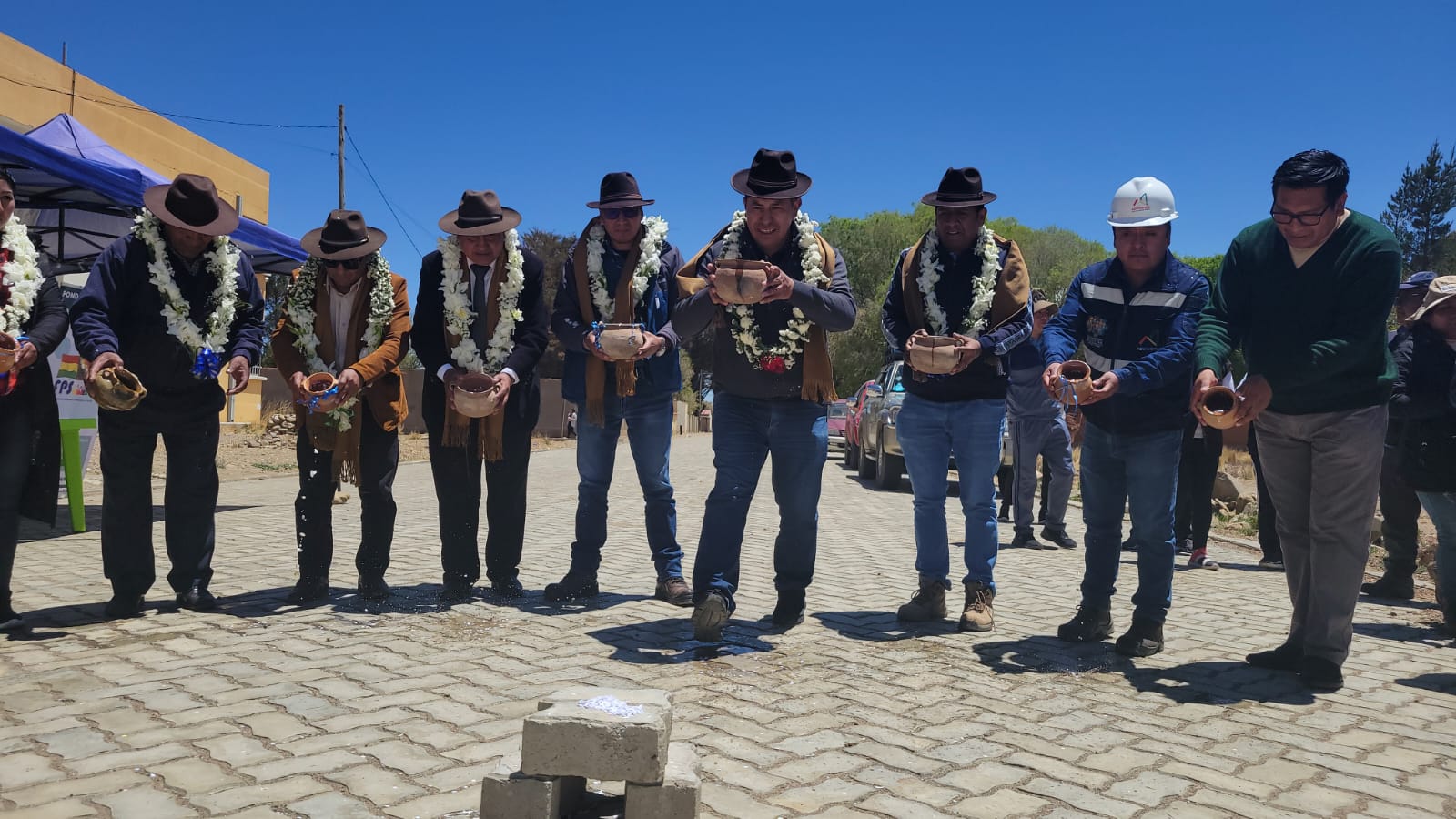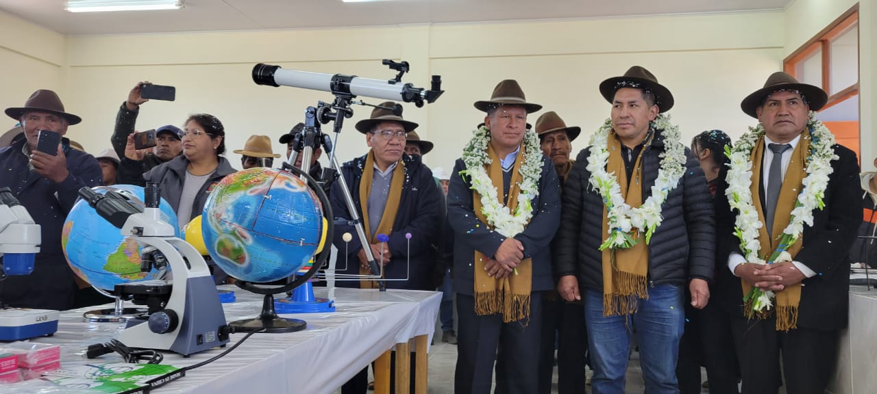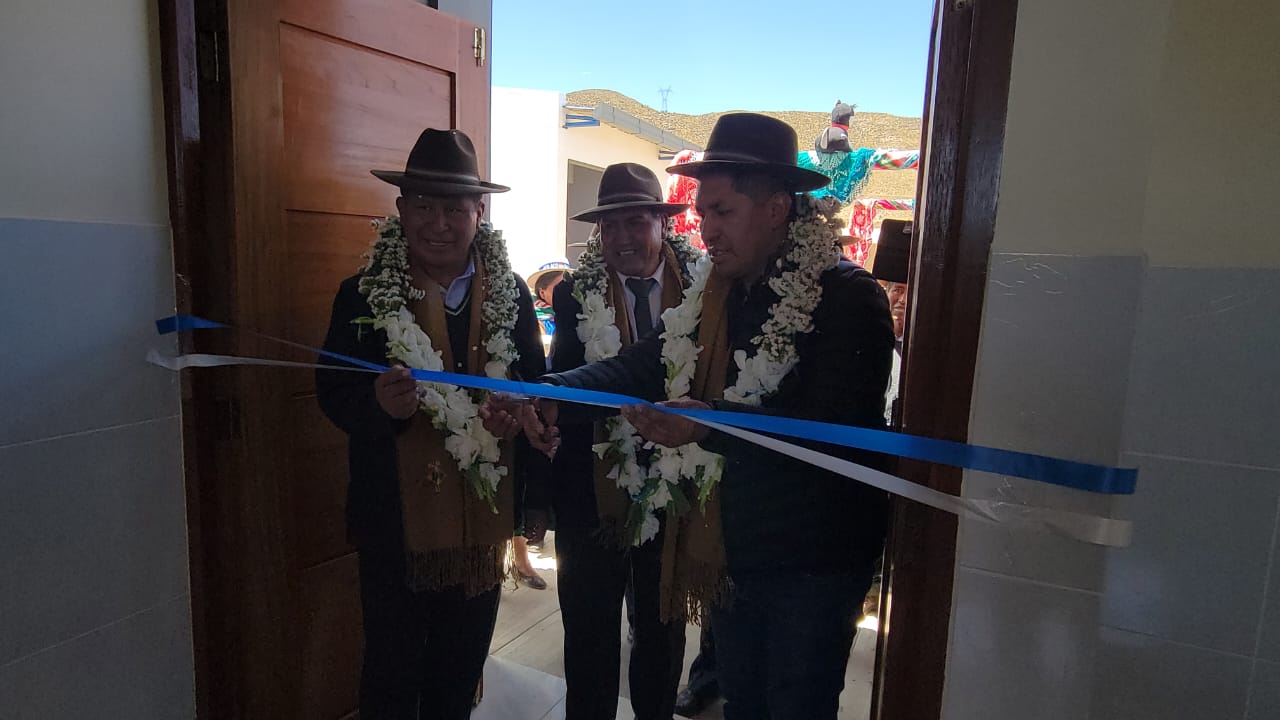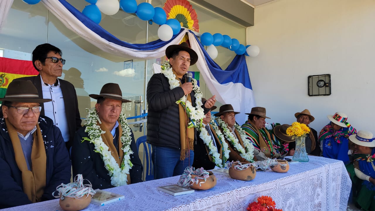 El ministro de Desarrollo Productivo y Economía Plural, Zenón Mamani, participa en la entrega de obras, en Machacamarca y Oruro