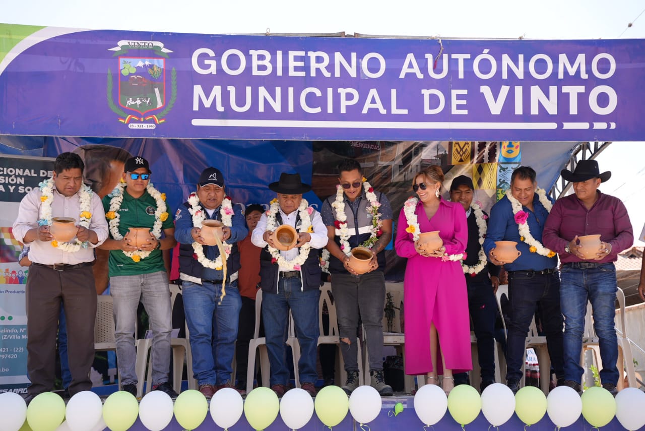 El viceministro de Comercio y Logística Interna, Luis Murillo, entrega obras en Vinto