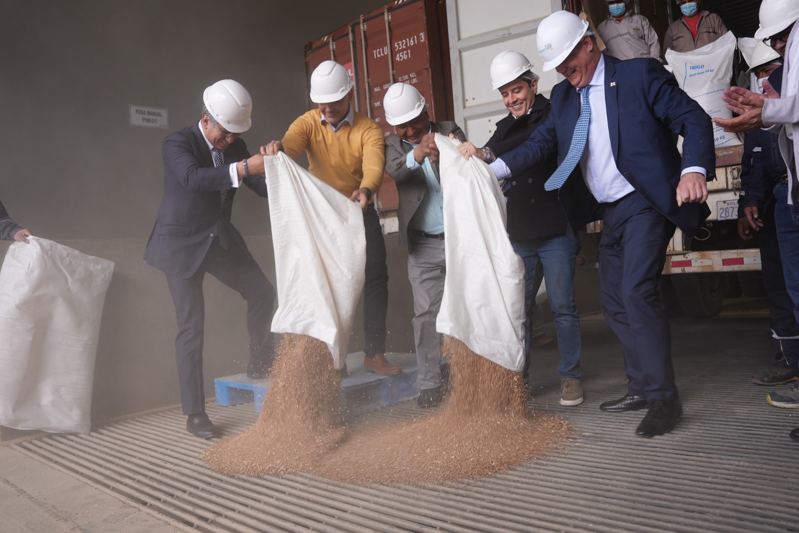 MDPRyA. – Como resultado de las gestiones impulsadas por el Gobierno Nacional, a través del Ministerio de Desarrollo Productivo, Rural y Agua, Bolivia recibió este martes la donación de más de 1.400 toneladas de trigo. Este importante aporte, valorado en 1,3 millones de dólares, se consolida gracias a la cooperación estratégica de la Federación de Rusia y el Programa Mundial de Alimentos (PMA), con el objetivo de fortalecer la seguridad alimentaria de madres bolivianas.