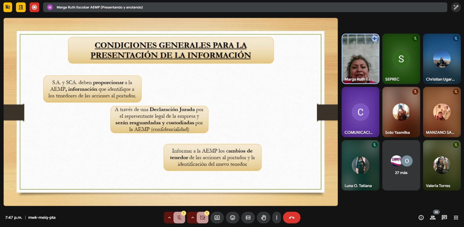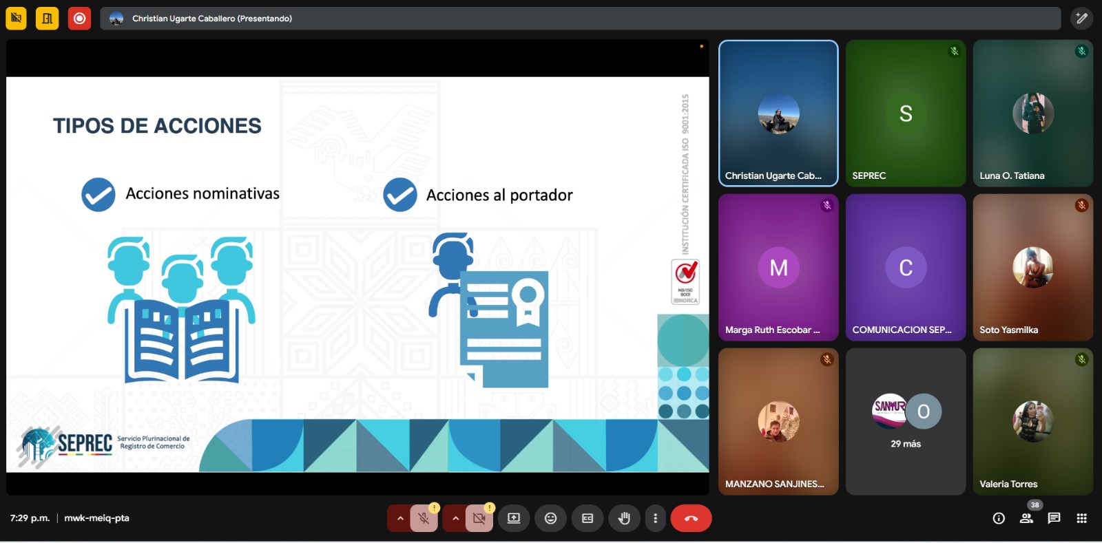 SEPREC y AEMP capacitan a sociedades anónimas de Cochabamba y Tarija sobre el Decreto Supremo 4907